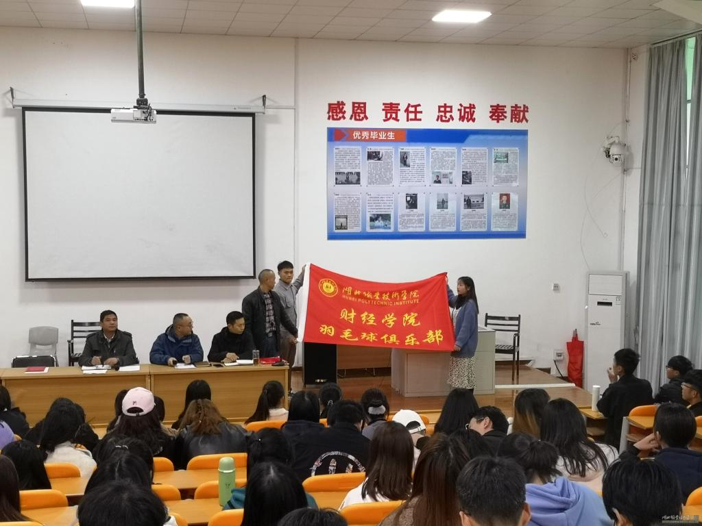成立大会由正规滚球app平台官网学工办主任黄曙光主持,正规滚球app平台官网学工副书记孙超分别给李斌老师、田晓军老师、李蓓蕾老师颁发了羽毛球、篮球、足球俱乐部指导教练聘书,各指导教练分别给三个俱乐部进行了授旗。