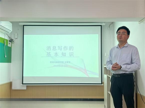 活动现场,王亚军老师结合自身“传媒人”的经历,讲解了新闻写作的基本知识、以DeepSeek为例进行新闻创作的方法,并对初学者提出了“脚勤、眼勤、脑勤、笔勤”四勤建议,勉励大家笔耕不辍,追求进步。
