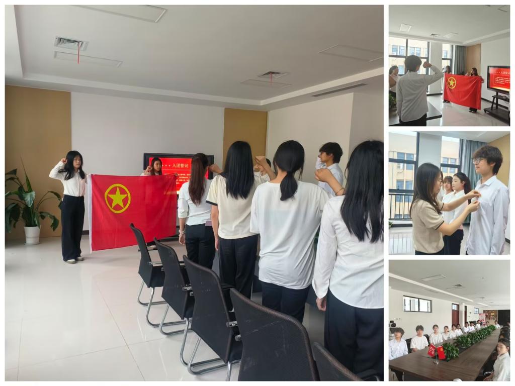 仪式在庄严的国歌声中拉开帷幕。团总支书记张星月宣读了新发展团员名单,并亲手为新团员们佩戴上闪耀的团徽。一枚枚团徽,不仅是身份的象征,更是责任与使命的寄托。随后,在主持人林长霞的带领下,全体新团员面向鲜艳的团旗,庄严举起右拳,发出了铿锵有力的誓言。那一声声誓言,彰显着新团员们“听党话、跟党走”的坚定决心,也表达了他们为共产主义事业贡献力量的赤诚初心。