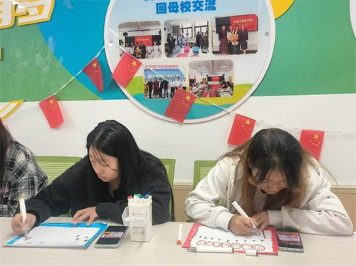 随后活动进入绘画环节。同学们手持五颜六色的画笔,俯身于画纸之上,用色彩和线条倾注深沉的情感。有的同学以凝重深沉的色调勾勒出烽火岁月的悲壮与伤痛;有的同学则用明亮昂扬的色彩描绘出巍峨的长城、翱翔的和平鸽与飞速发展的现代城市,表达对强国未来的无限憧憬。一幅幅画作不仅是对历史的深刻纪念,更成为了同学们理想与信念的生动载体,现场气氛庄重而热烈。