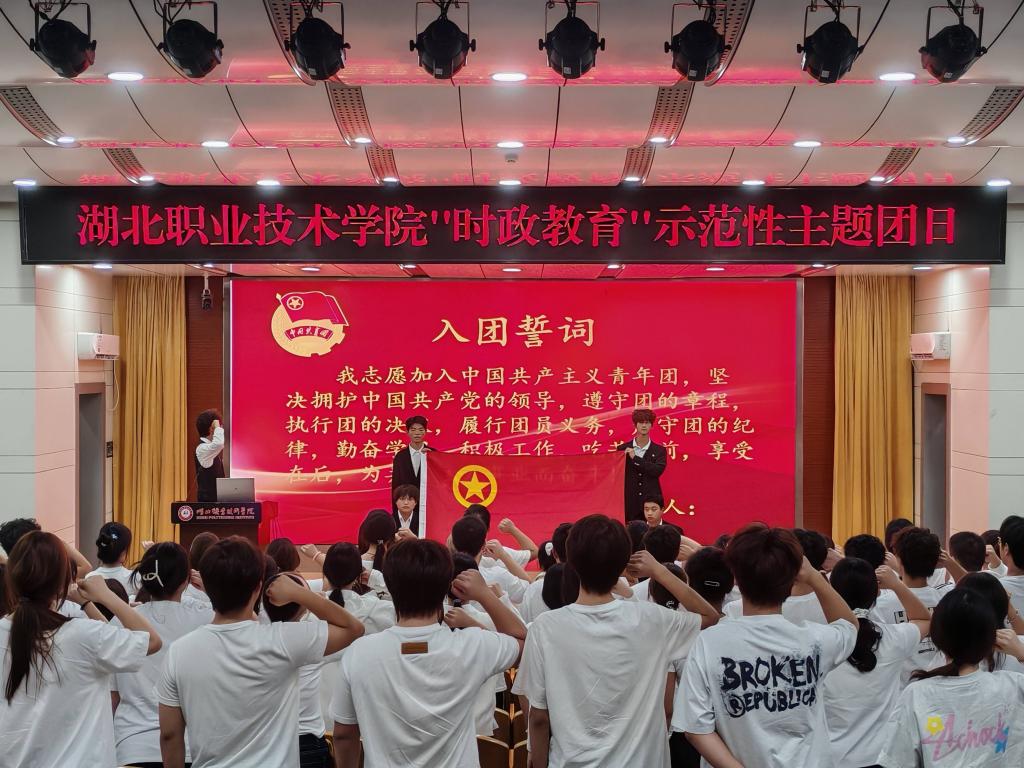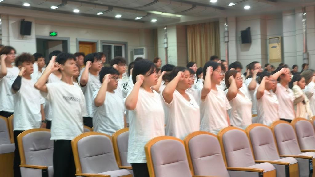 团员们高举右拳,在领誓人的带领下庄严宣誓,铿锵誓言响彻全场,传递出“请党放心,强国有我”的坚定信念。