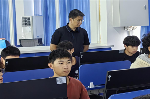 郭校长全程认真聆听,详细记录教学环节设计、教学内容呈现、师生互动情况、学生课堂表现以及教学目标落地等关键信息。并深入学生中间,了解学生完成实训任务所需要的专业理论知识和实践技能水平掌握和熟练程度。