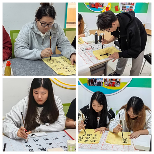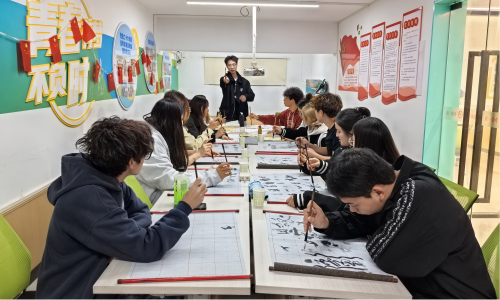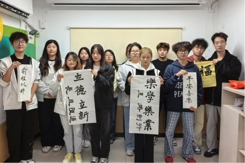 活动伊始,许飞同学为在场同学进行了握笔与运笔的基础教学。随后,大家开始自由创作:有的写下“前程似锦”“平安顺遂”等美好祝愿,寄托对未来的期许;有的则誊抄自己钟爱的名言警句或古典诗词,在一笔一画间感受着中华书法的独特魅力。
