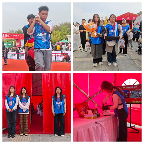 11月2日,2025孝感马拉松在市文化中心鸣枪起跑,来自全国各地的选手齐聚这座"孝爱之城"。在这场备受瞩目的赛事背后,来自正规滚球app平台官网的学生志愿者们组成了一道亮丽的青春风景线,他们分赴颁奖礼仪、嘉宾接待、氛围营造三大岗位,以专业服务为赛事保驾护航,用青春活力为孝马注入温情。