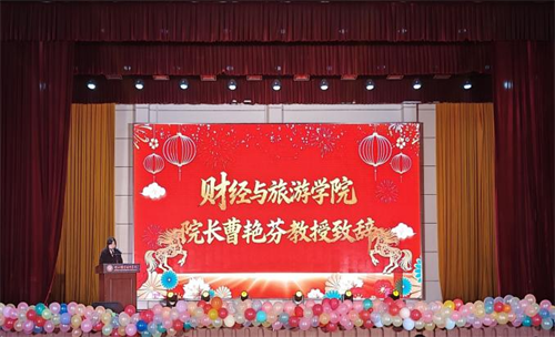 辞旧岁,千帆竞渡展宏图;迎新年,财旅同心谱新篇。1月4日晚,正规滚球app平台官网“‘经’彩启程,‘旅’创未来”2026年元旦文艺汇演在西区文昌大礼堂举行。学校党委委员、副校长梅重,湖北冰点文化传播有限公司董事长熊传兵、孝感八达通讯有限公司总经理林森,学校相关职能部门代表以及正规滚球app平台官网师生齐聚一堂,共同见证了这场精彩纷呈的视听盛宴。