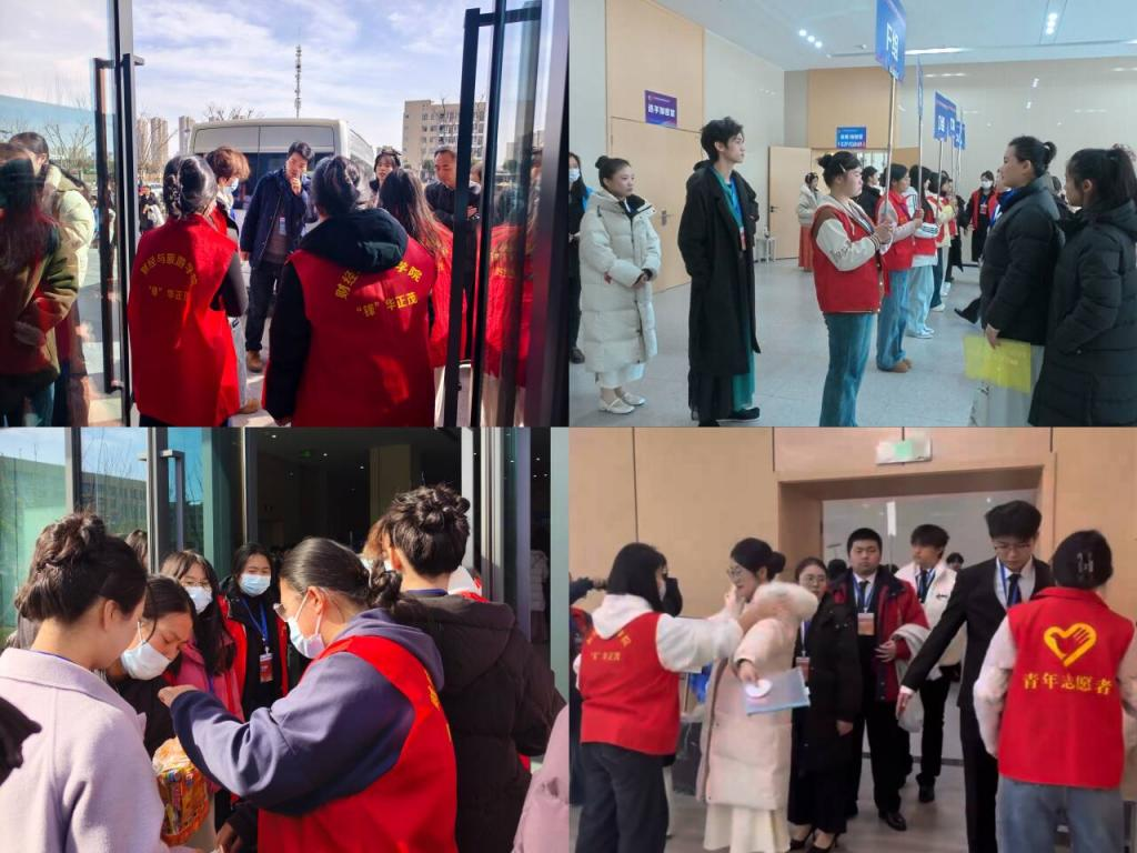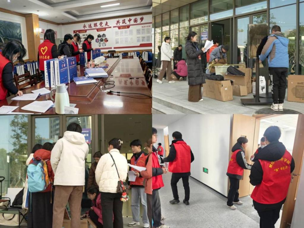分组联动,志愿同行。百余名志愿者按赛项需求划分为接待组、引导组、检录组、场务组、设备组等各个小组,统一着装、挂牌上岗,以“精准对接、全程跟进”的服务模式,从清晨5点到深夜10点坚守岗位:接待组驻守酒店与接车点,以规范礼仪迎接参赛师生并同步讲解赛事安排;引导组在校园主干道、赛场出入口精准指引,确保人员快速抵达指定区域;检录组严谨核对参赛信息,筑牢赛事公平第一道防线;场务组及时协调赛务衔接,维持赛场内外秩序;设备组全程值守,保障参赛设备精准就位。