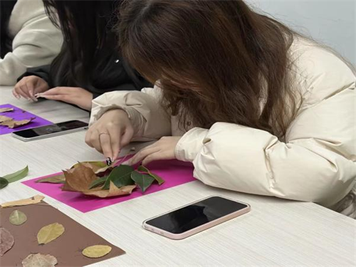 活动中,主持人围绕生态文明与低碳生活进行主题分享,并巧妙融入趣味语言游戏,引导同学们在欢声笑语中学习环保知识,让绿色理念在互动中入脑入心。同学们化身自然艺术家发挥想象力与创造力,将一片片普通的树叶拼接成蝴蝶、小动物等生动形象的手工作品。大家在与自然的亲密接触中体会到了变废为宝的乐趣,更深化了对珍惜资源、保护环境的理解与认同。