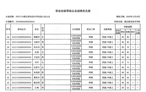 根据国家职业技能鉴定相关规定及学校工作安排,滚球官网组织了网络电商服务师职业技能鉴定考试,20251124正规滚球app平台官网第21批认定(计划编号:25Y0000420900260021)。