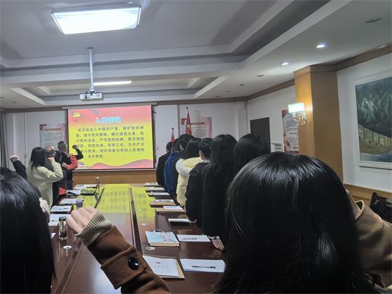 学工支部书记陈卫红首先介绍了预备党员的基本情况;在奏唱《国际歌》后,学院组织员黄曙光带领预备党员及学工支部全体党员向党旗庄严宣誓。